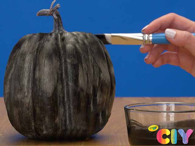 A blank space to decorate! Make DIY chalkboard paint, then use Crayola Sidewalk Chalk to add details to a faux pumpkin.