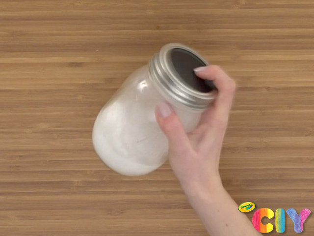 Create glue mixture by adding equal parts water and glue in a mason jar. Twist on lid and shake until well combined.