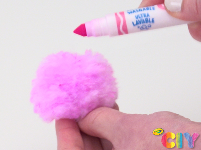 Color a large and small pom-pom with markers.
