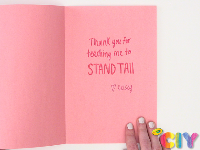 Add Mother’s Day message to inside of card with permanent markers and gel pens.