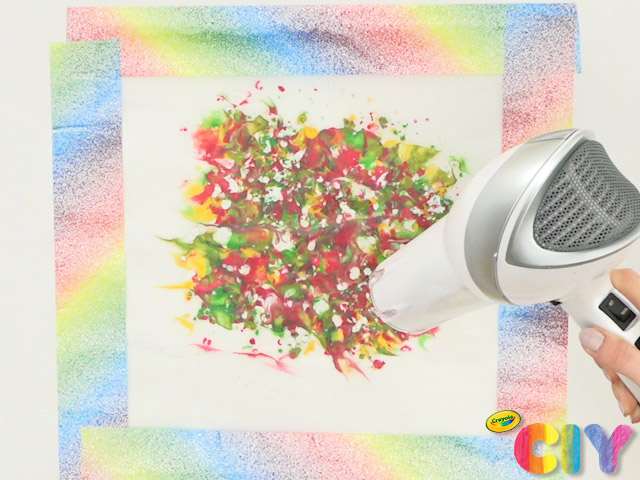 With the help of an adult, use a hairdryer to melt the shavings. Let cool 15 minutes.