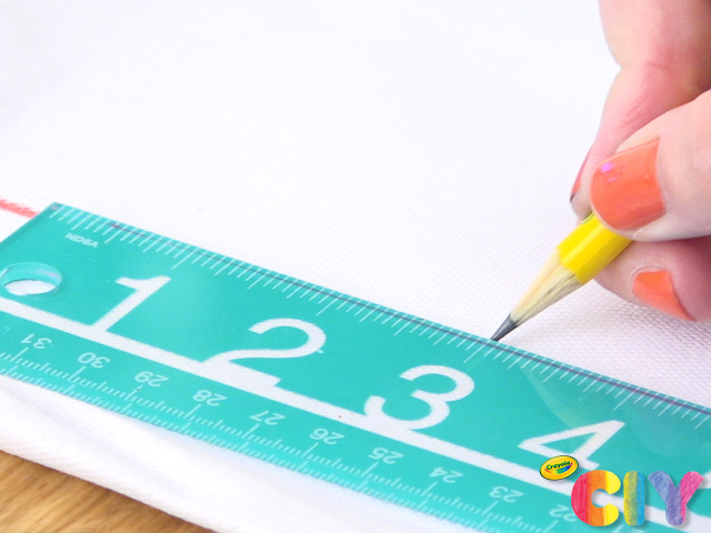 Use blue fabric marker and ruler to connect the tick marks, making horizontal lines across the bag like notebook paper.