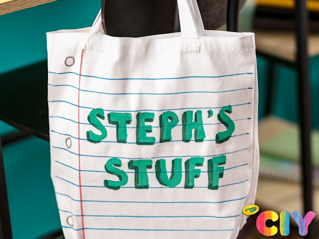 • Get creative with how you want to decorate your bag; we chose to add fun bubble letters!