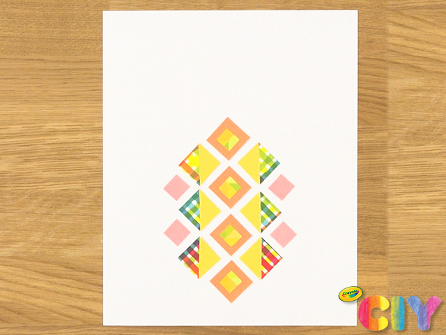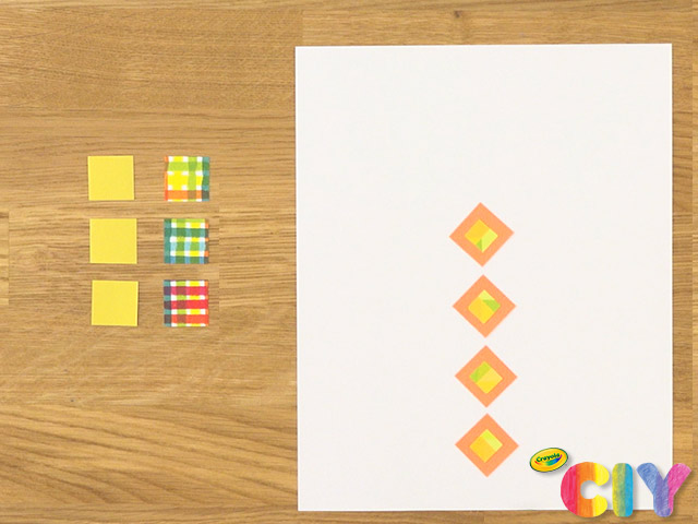 Orient squares as diamonds. Glue and stack vertically on plain cardstock.