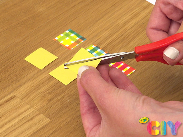 Measure 4 (1” x 1”) construction paper squares. Cut out.