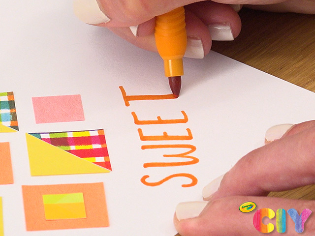 Glue Bright Pop cardstock squares to middle of construction paper squares.