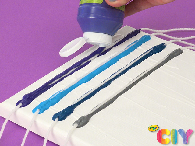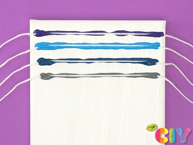 • The watered-down white paint helps the string glide around the canvas more smoothly. White paint should be smooth without being too runny.
