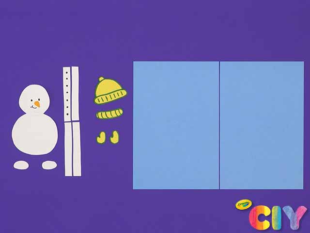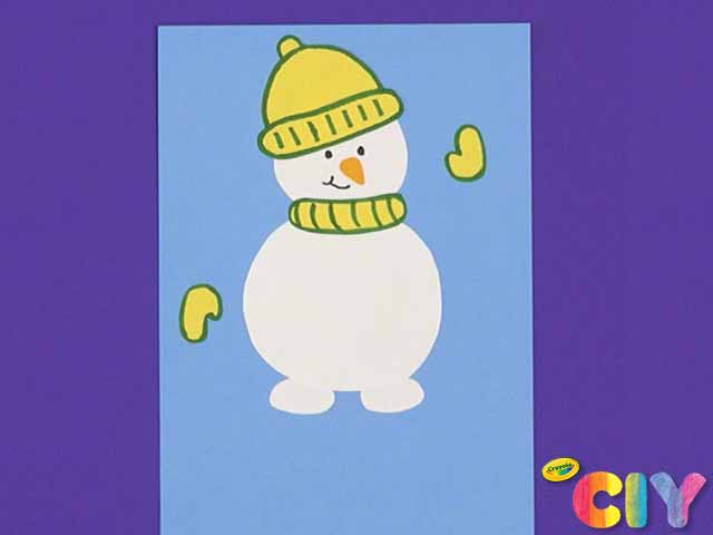 Glue snowman body, hat, scarf, and mittens to cardstock.