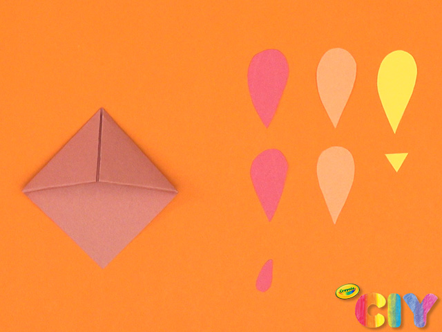 Fold in half to create triangle. Rotate so long edge is at bottom and right angle faces up.