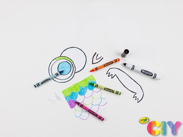 Colorea todas las piezas recortadas con lápices de colores Crayola. Use los marcadores lavables con aromas Power Lines para agregar detalles.