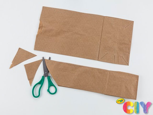 Dobla una bolsa de almuerzo de papel marrón por la mitad y corta el extremo abierto en punta.