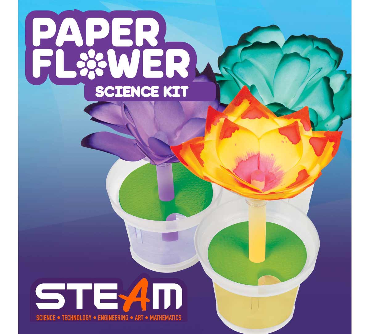 • DIY PAPER FLOWERS CRAFT KIT: This science kit features everything needed to make 12 Wicking Paper Flowers, as well as a guide with step-by-step instructions.